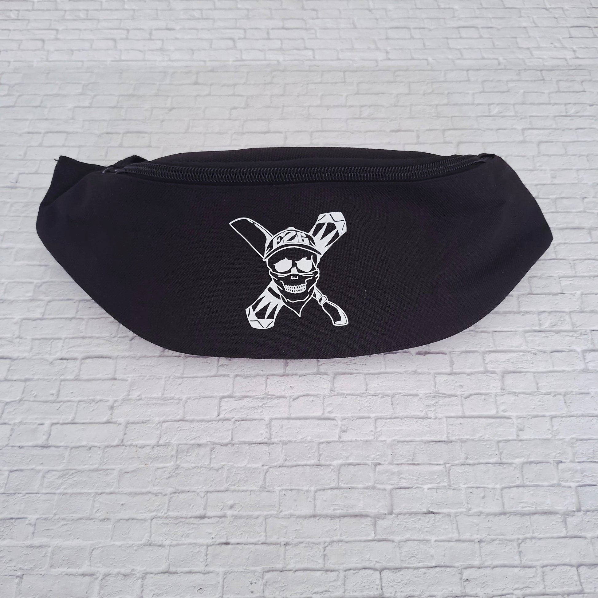 EZG Skull in wit gedrukt op een zwarte bodybag van 100% polyester.