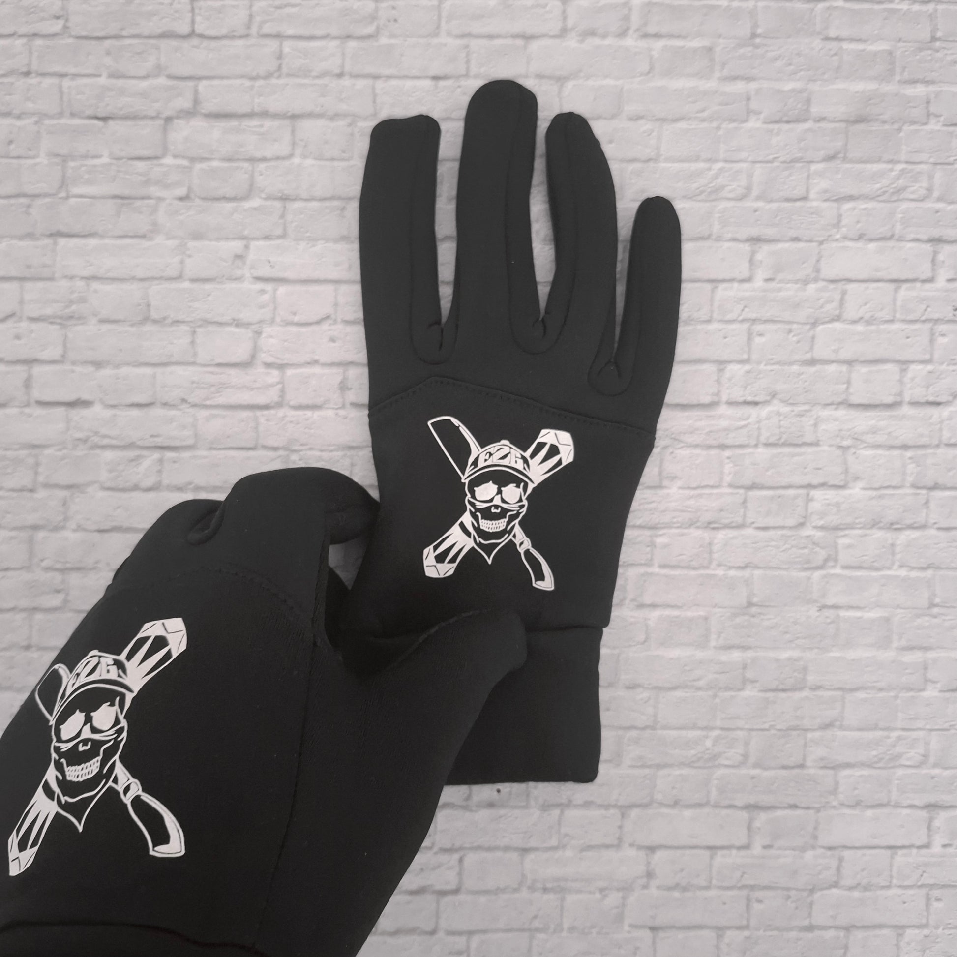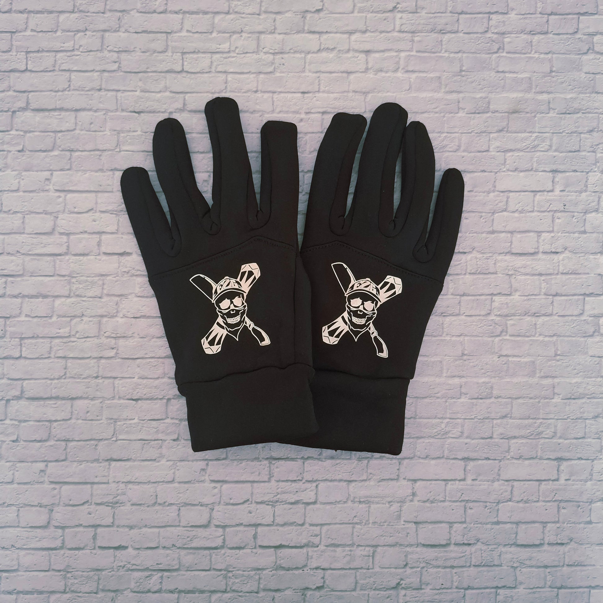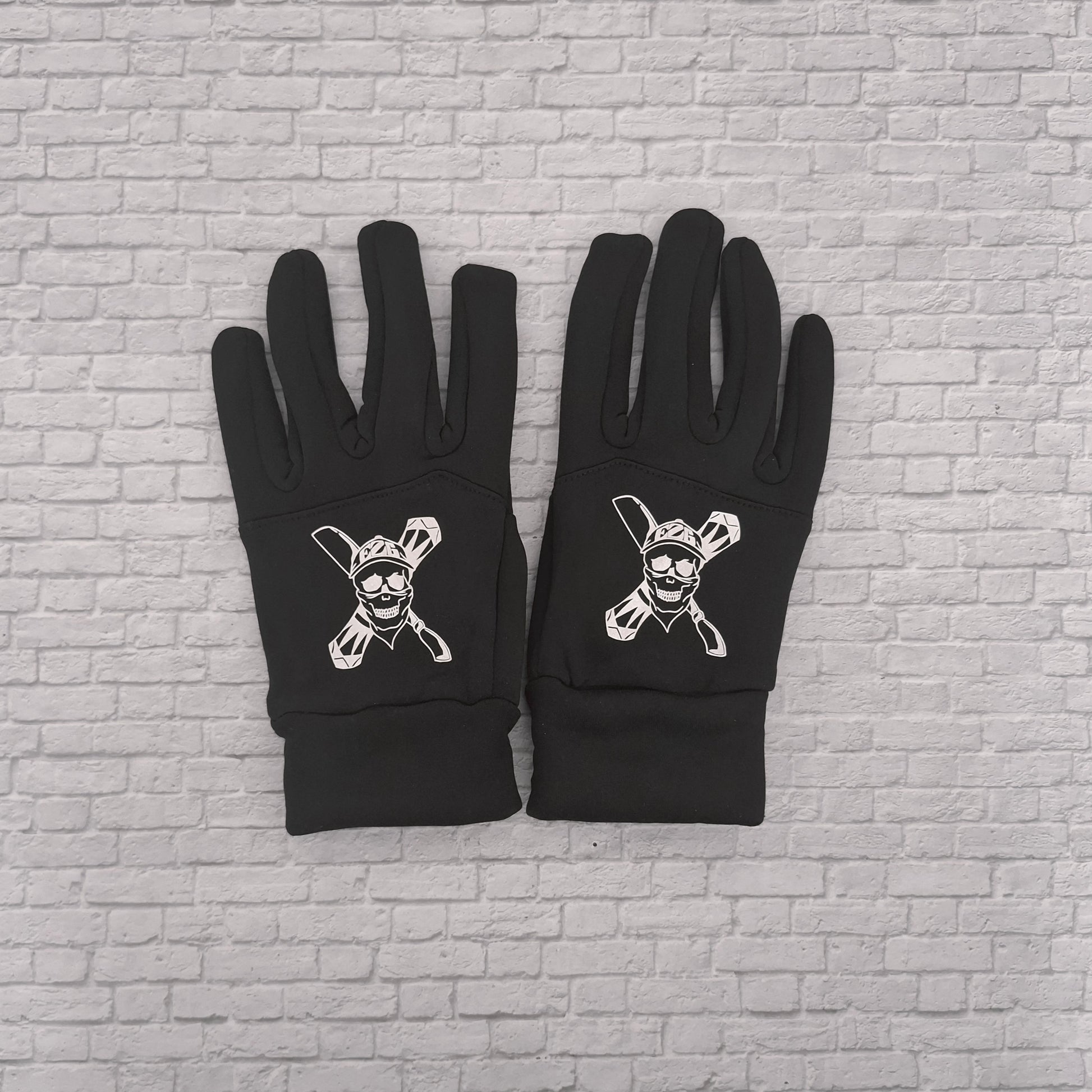 Wit EZG Skull logo gedrukt op zwarte goretex handschoenen