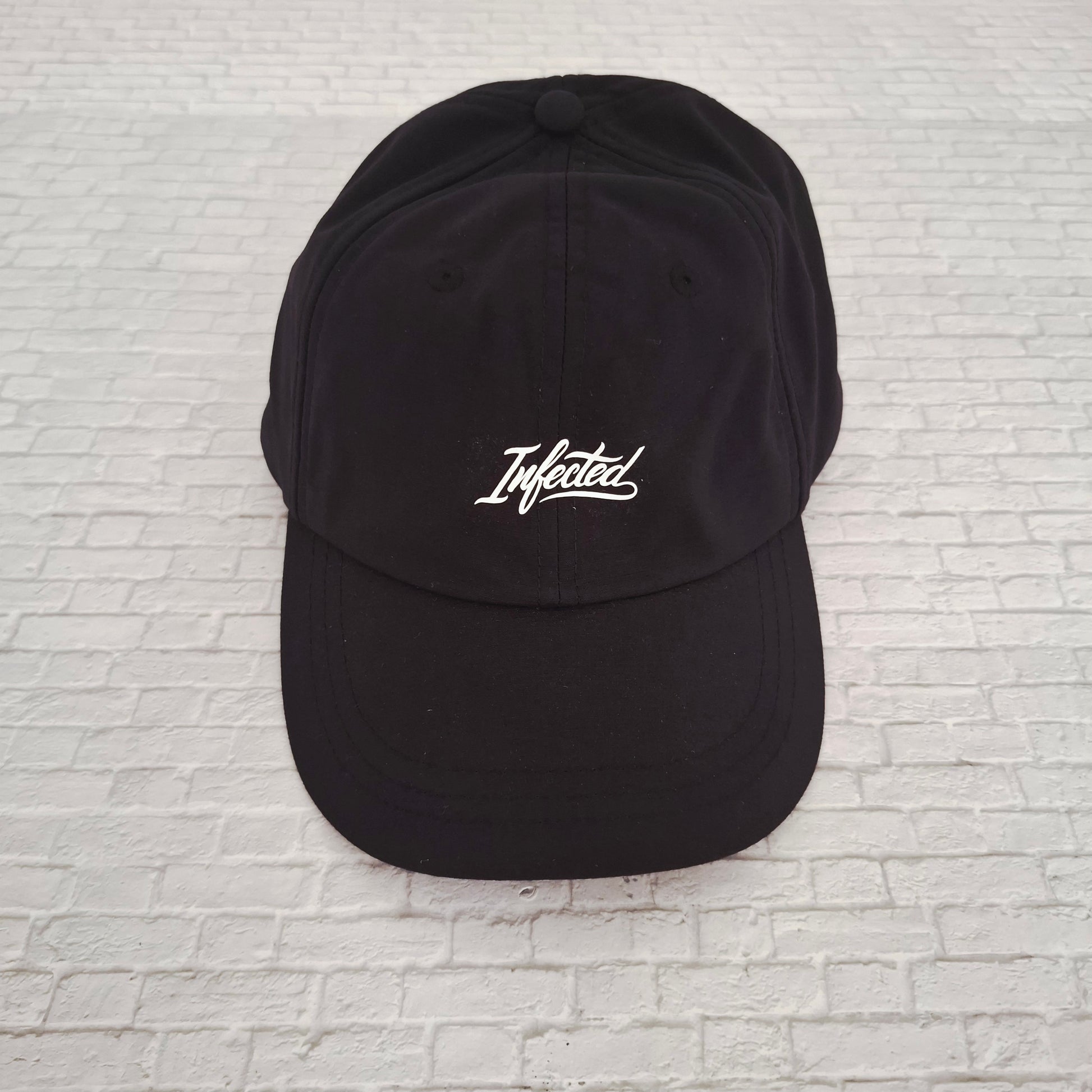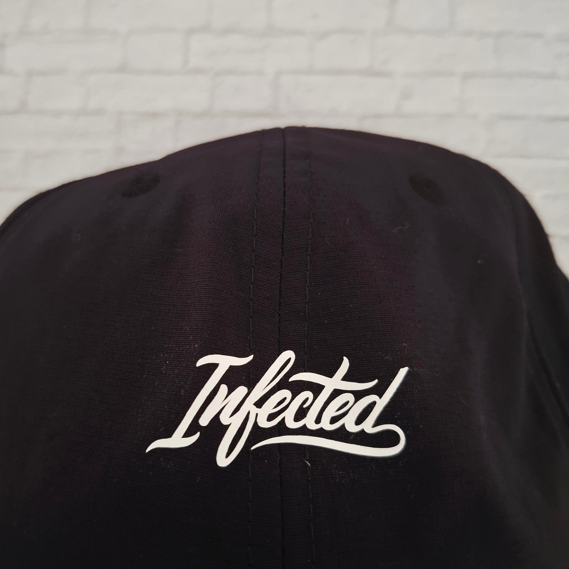 Infected logo in het wit gedrukt op een zwarte 6 panel pet, waterdicht en ademende stof, Verstelbare gesp sluiting.