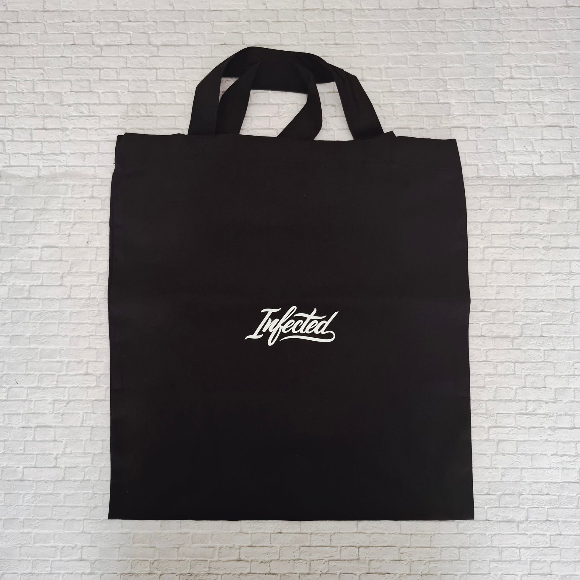 Infected® logo wit gedrukt op zwarte shopper van 100% katoen.